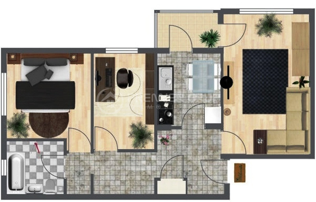 Imobilul, cu o suprafata de 61mp, este imbunatatit la interior cu: centrala termica, gresie, faianta, parchet, usa metalica, usi interior, balcon inchis cu termopan si aerisire naturala la baie.